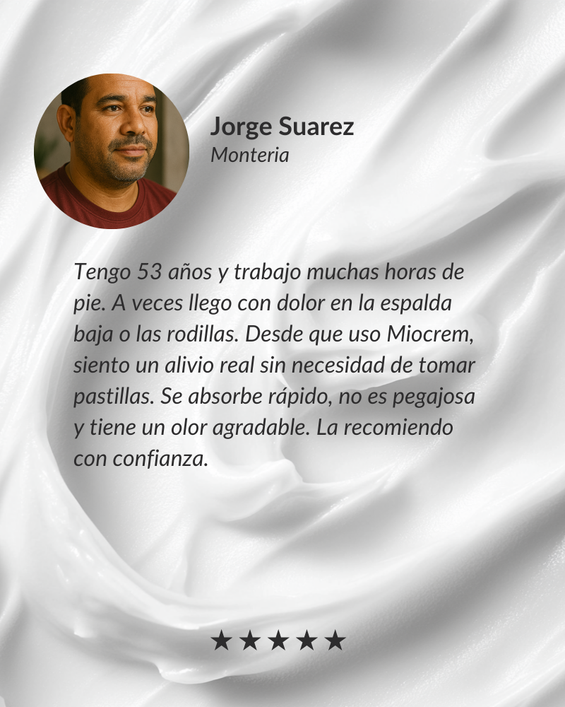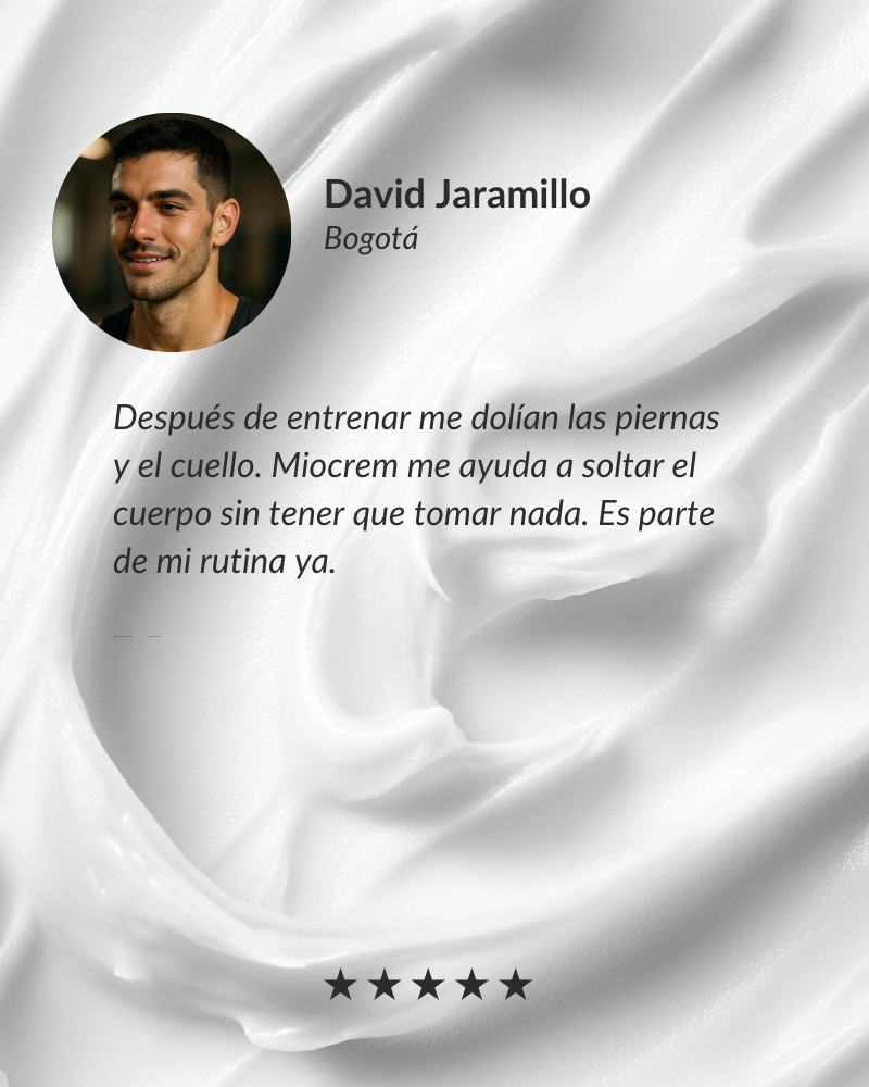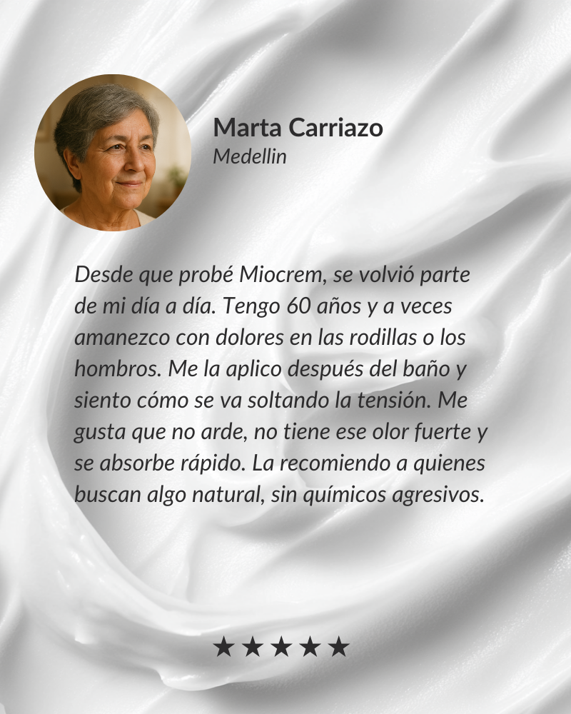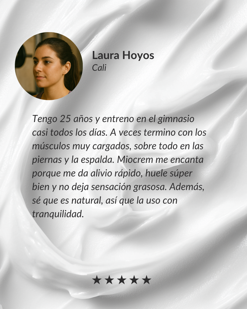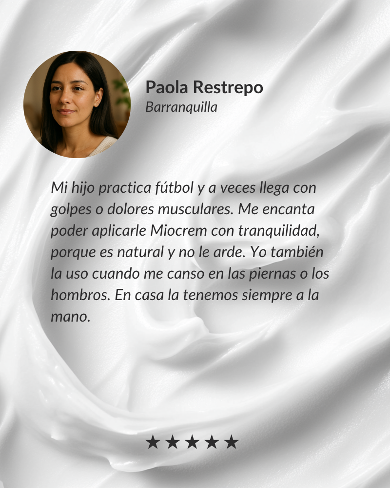 Como fisioterapeuta, sé que una buena recuperación no depende solo del ejercicio terapéutico, sino también de los productos que utilizamos. Miocrem fue creada desde la experiencia clínica real, pensada para acompañar cada etapa del proceso de rehabilitación muscular y articular. Lo que más valoro es que alivia el dolor, reduce la inflamación y mejora la recuperación sin recurrir a químicos agresivos. Además, el equipo de Miocrem escucha activamente nuestras sugerencias como profesionales y mejora constantemente su fórmula. Es una crema en la que confío, no solo para mí, sino también para mis pacientes.